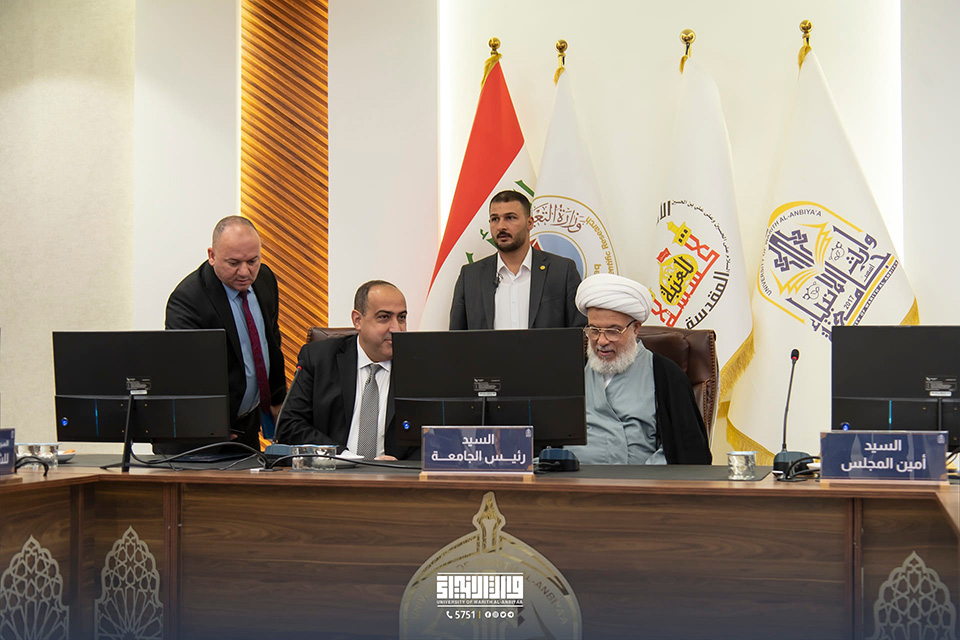 Warith Al-Anbiyaa University (PBUH) was honoured to host the Supreme Religious Authority's representative, His Eminence, the legal guardian of the Holy Shrine of Imam Hussein (PBUH), Sheikh Abdul Mahdi Al-Karbalai (may he always be honoured). The university's president, Professor Dr. Ibrahim Al-Hayawi, the administrative assistant, Professor Dr. Nofal Al-Araji, the scientific assistant, Professor Dr. Waqid Al-Mousawi, as well as college deans, received the dignitaries.