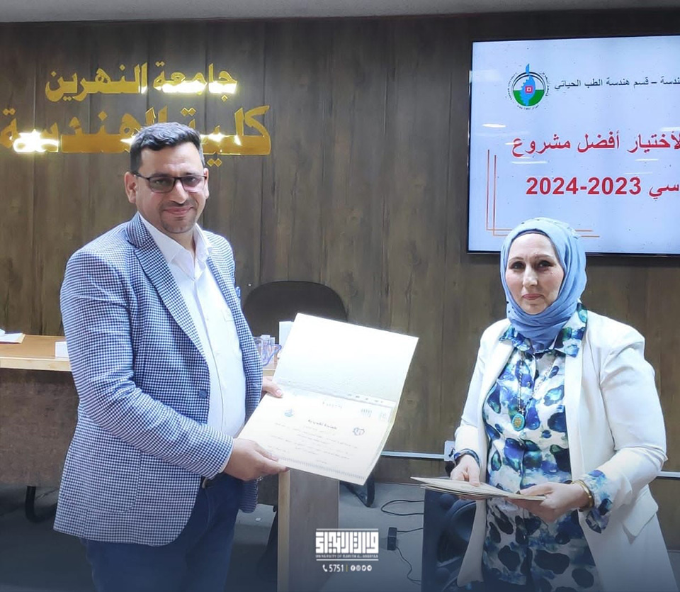 Assistant Professor Dr. Hassan Talib Hashem, the head of the Biomedical Engineering Department at the College of Engineering at Warith Al-Anbiyaa University (PBUH), was appointed as a member of the jury to select the best graduation project for students from the Biomedical Engineering Department at Al-Nahrain University due to his scientific competence.