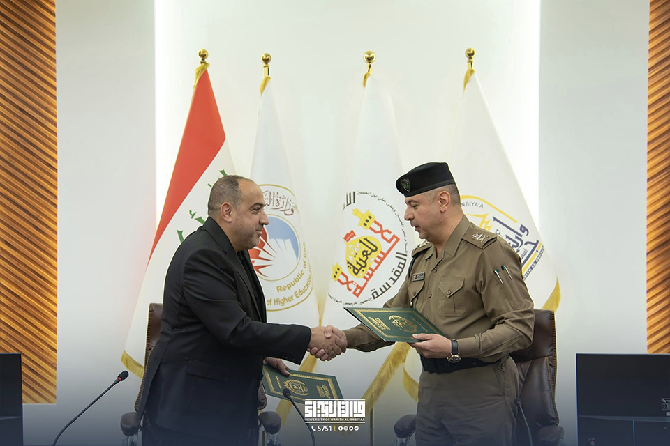 The College of Law and Political Science at the University of Warith Al-Anbiyaa (PBUH) has signed a memorandum of cooperation with the Police College, as represented by its Dean, Major General Dr. Uday Samir Halim, in the presence of a number of officers and professors representing both colleges.