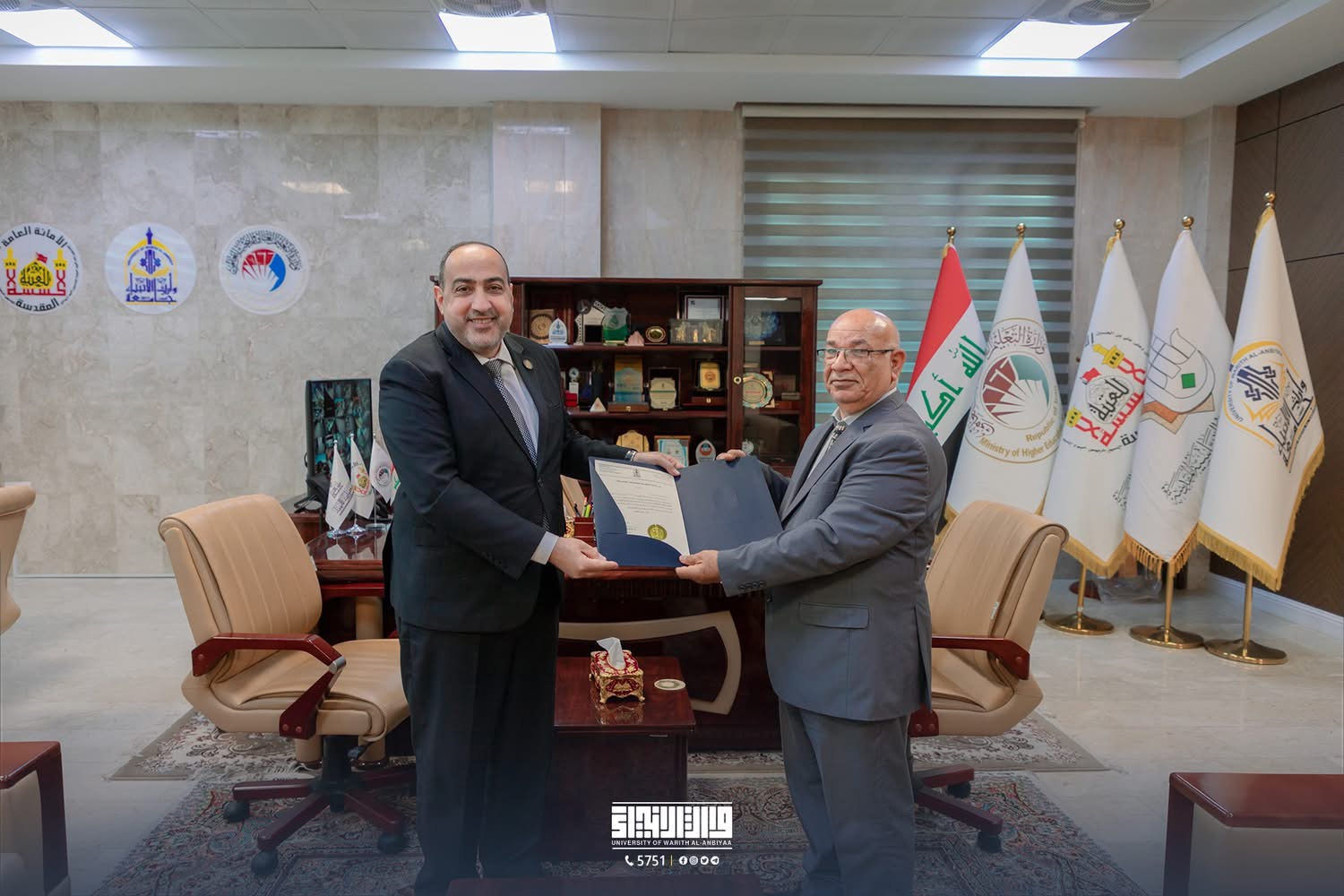 The presidency of Warith Al-Anbiyaa University, represented by Professor Dr. Ibrahim Saeed Al-Hayawi, extended congratulations to Professor Dr. Awad Al-Khalidi on the renewal of trust in him and his continuation as the Dean of the College of Administration and Economics, wishing him continued success in his academic and administrative career.