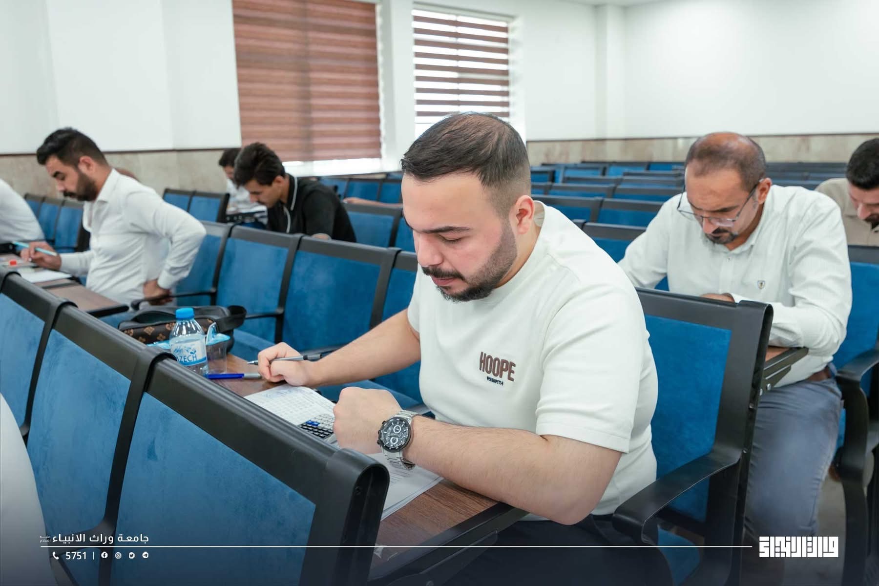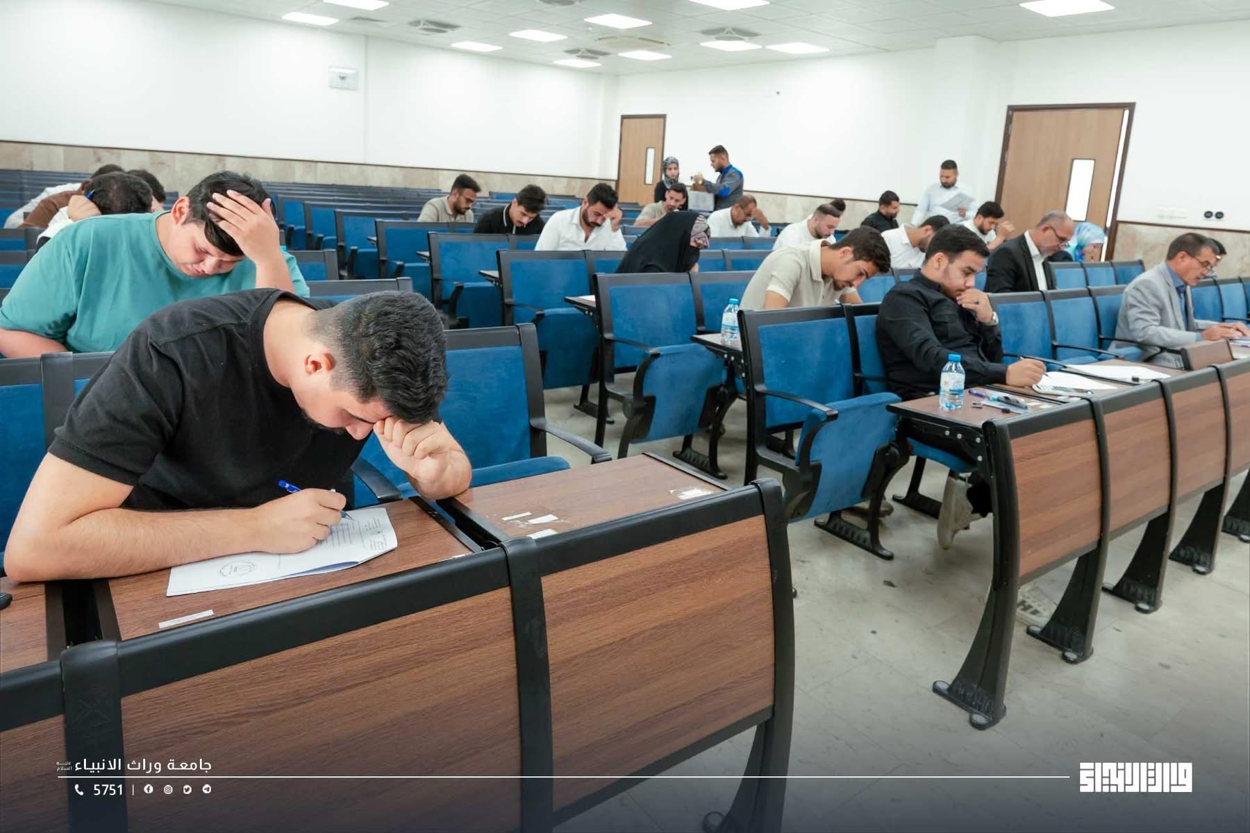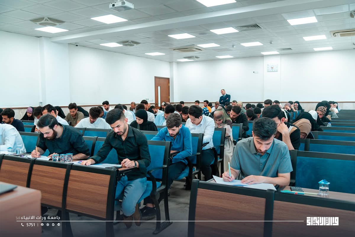 A glimpse of the final examinations at the College of Administration and Economics / University of Warith Al-Anbiyaa, conducted under the direct supervision of the university presidency, with close follow-up by the Scientific Assistant, Professor Dr. Waqid Al-Moussawi, and with the dedicated support and intensive efforts of the college deanships and examination committees
