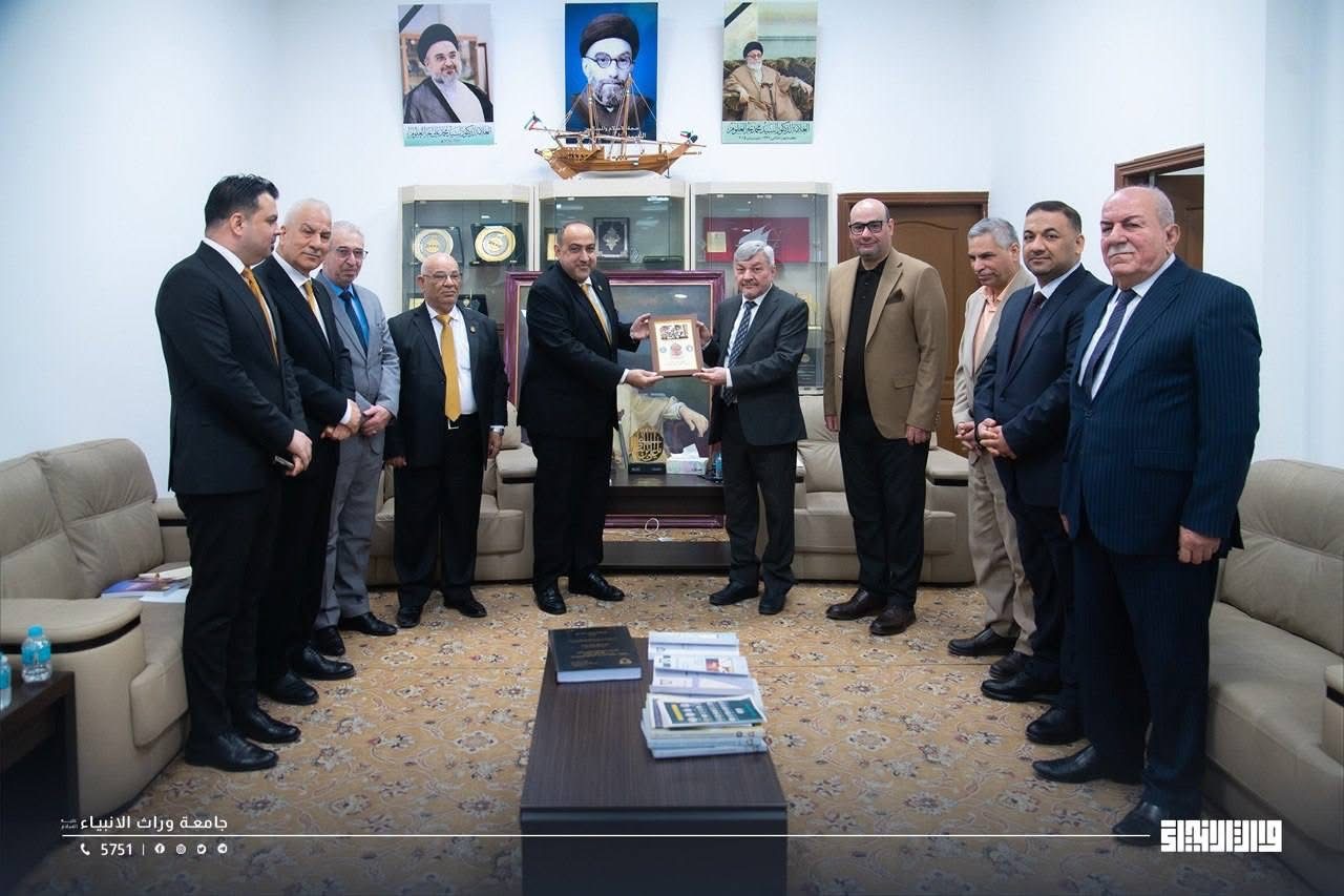​University of Warith Al-Anbiyaa Delegation Visits Al-Alamein Institute for Higher Education​A delegation from the University of Warith Al-Anbiyaa, led by the University President, Professor Dr. Ibrahim Al-Hayawi, and accompanied by several college deans, visited the Al-Alamein Institute for Higher Education. The meeting was attended by the Dean of the College of Administration and Economics, Professor Dr. Awad Al-Khalidi, the Vice-Dean, Dr. Hussein Matook, and the Head of Quality Assurance, Professor Dr. Talal Al-Jijawi.