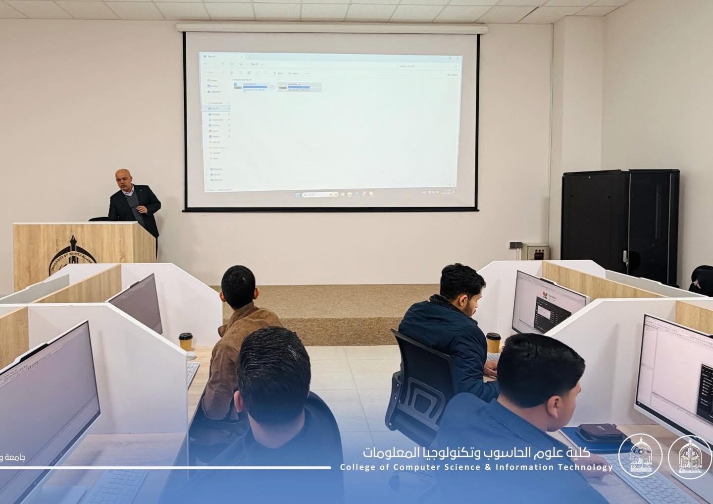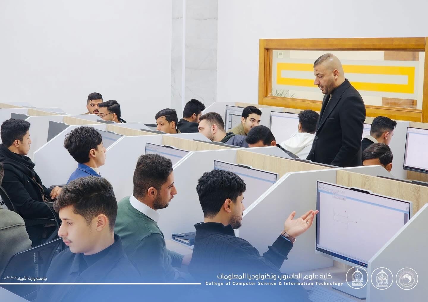 As part of the practical lectures for first-year students at the College of Computer Science and Information Technology – University of Warith Al-Anbiyaa (peace be upon him), students continue to apply the concepts of: