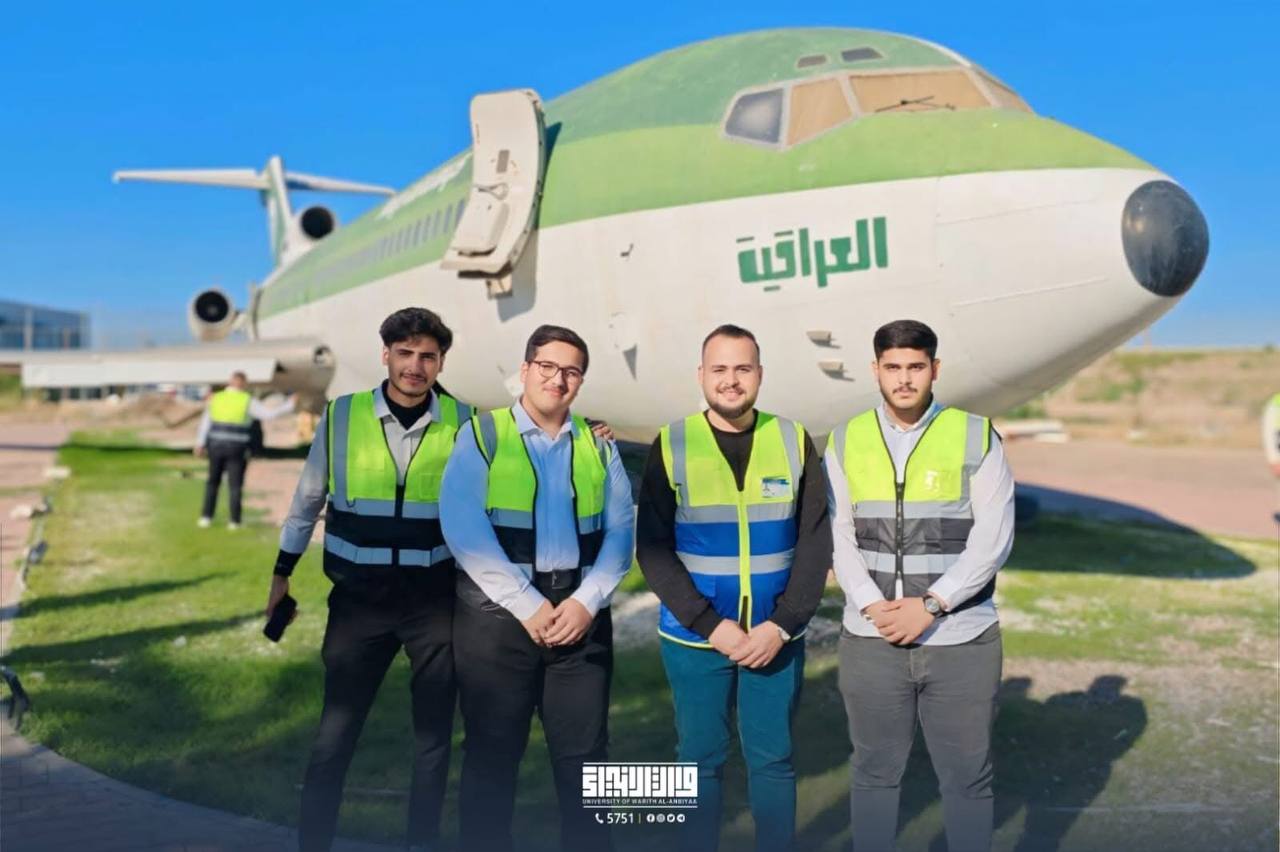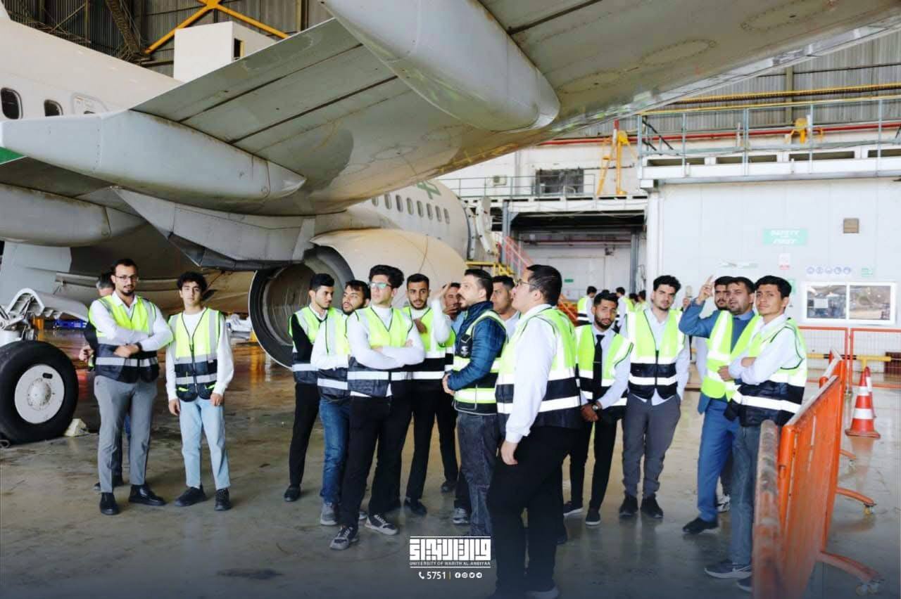 Second-year students in the Department of Aircraft Engineering at Warith al-Anbiya University (peace be upon him) conducted a scientific visit to Baghdad International Airport, with the aim of enhancing their practical knowledge and linking it to the theoretical aspects they are studying.