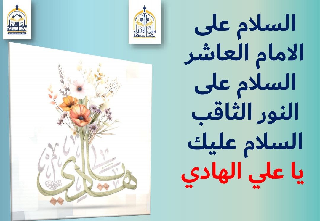 The College of Islamic Sciences, Warith Al-Anbiya University (peace be upon him), with its Dean, Assistant Professor Dr. Talal Faeq Al-Kamali, and all its professors and employees, extends the most sincere congratulations and blessings mixed with the best breezes to our Master, the Master of the Age (may Allah hasten his honorable reappearance), to the religious authorities, and to all believing men and women on the anniversary of the birth of Imam Ali Al-Hadi (peace be upon him).