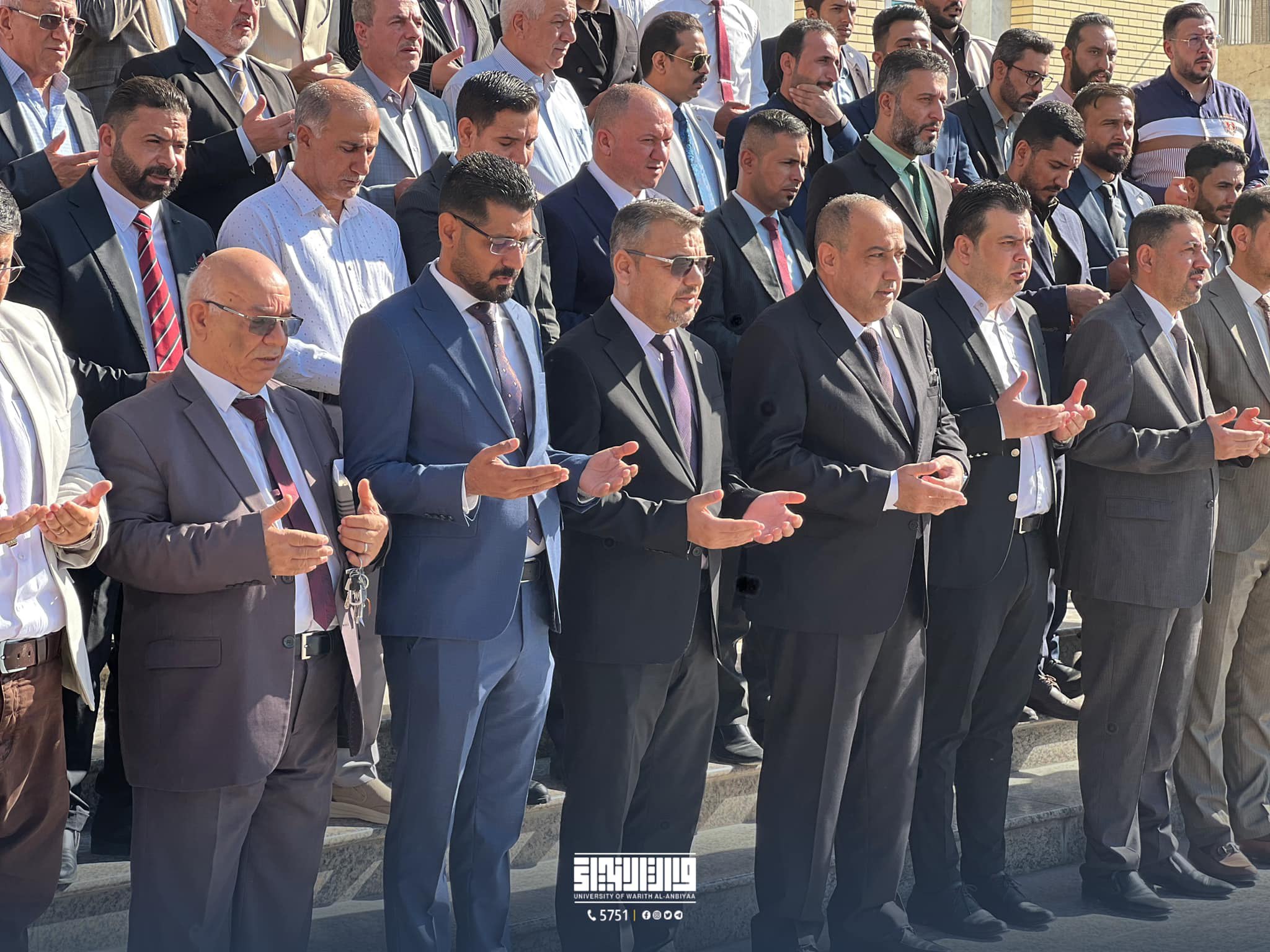 In implementation of the directives of the Supreme Religious Authority and the Ministry of Higher Education and Scientific Research, faculty members and administrative staff of the College of Islamic Sciences at Warith Al-Anbiya University (peace be upon him) participated in the solidarity stand that was organized on Wednesday morning, 9/25/2024.