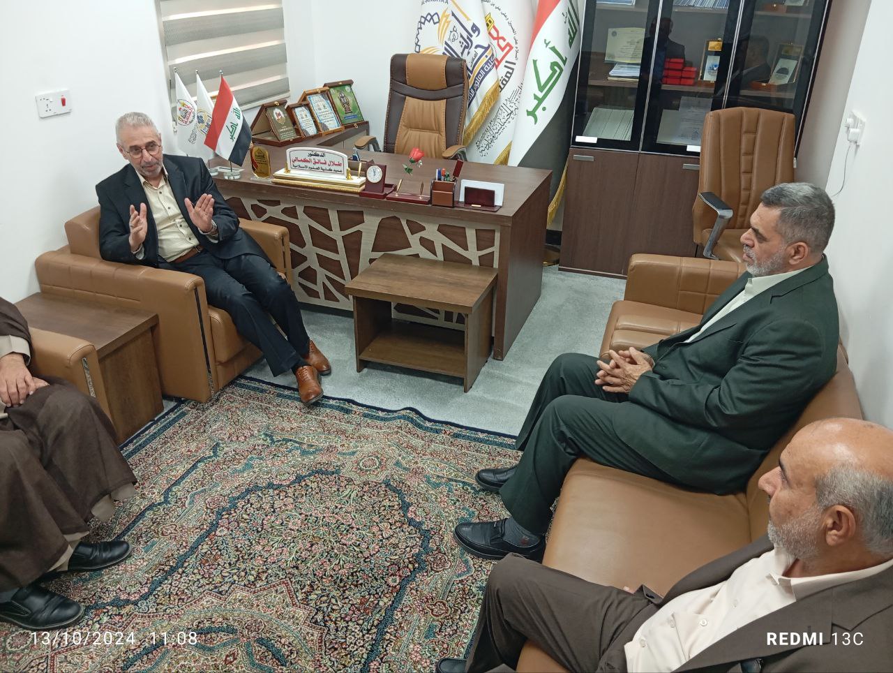 The Dean of the College of Islamic Sciences at the University of Warith al-Anbiya (peace be upon him), Dr. Talal Al-Kamali, held a meeting on Sunday 13/10/2024 with the Director of the Institute of History and Biography Research of the Office of Islamic Propagation in the Holy Qom, Dr. Hamidreza Motahhari, in the presence of professors and representatives of Al-Mustafa International University, namely Dr. Ali Allah Akbari, Dr. Abbas Al-Issawi, and Dr. Muhammad Al-Bandawi.