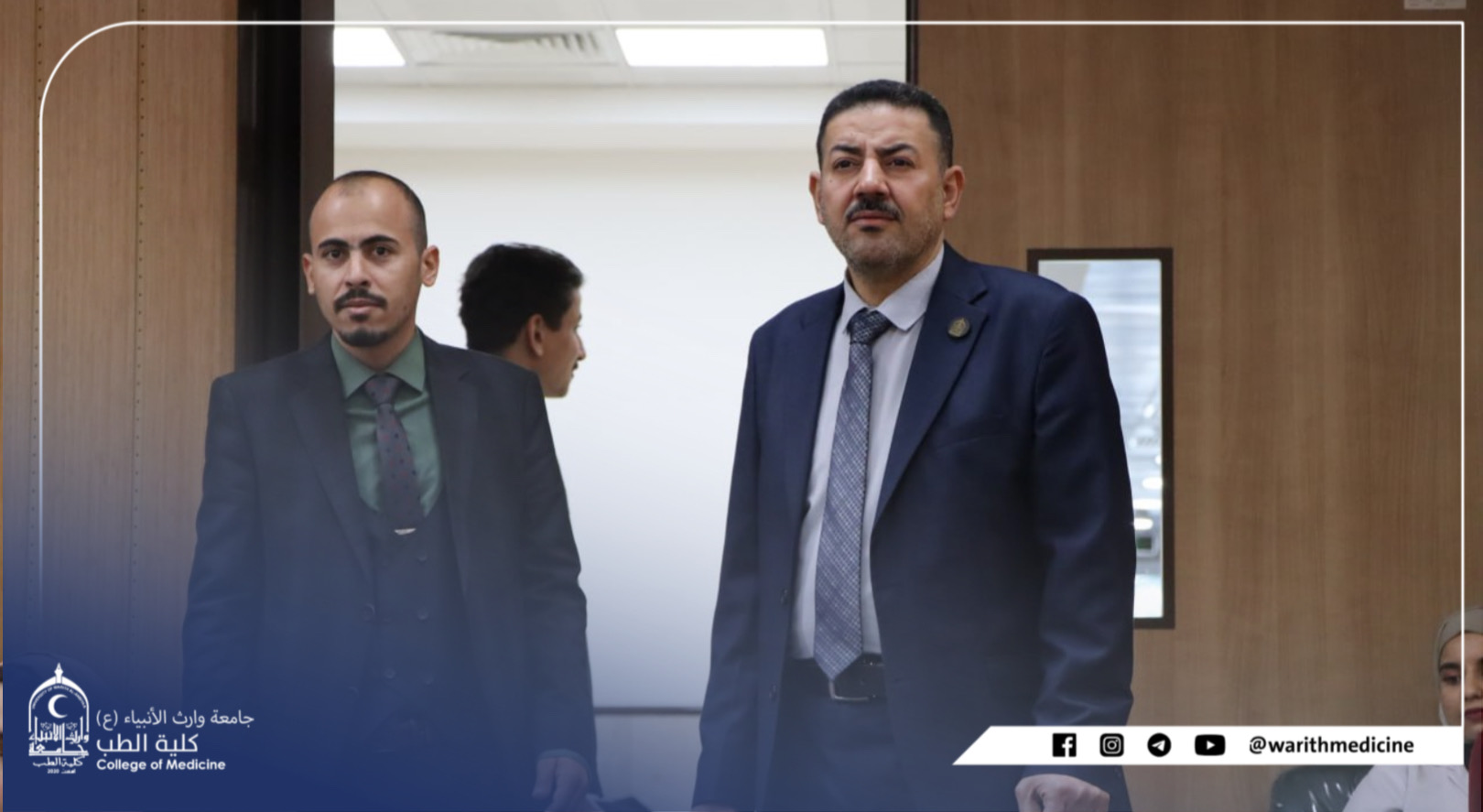 The Dean of the Faculty of Medicine at the University of Warith al-Anbiya (peace be upon him) received Professor Dr. Ali Abd Saadoun al-Ghazi, the respected Dr. Maad Nassif Jassim, a consultant to the British Royal College, where a presentation was made about the possibility of establishing a center for emergency and disaster medicine in cooperation with the British Royal College and opening channels of cooperation between the Royal British College and the University of Warith al-Anbiya. (A) Where the delegation was briefed on the infrastructure and human resources at the university.