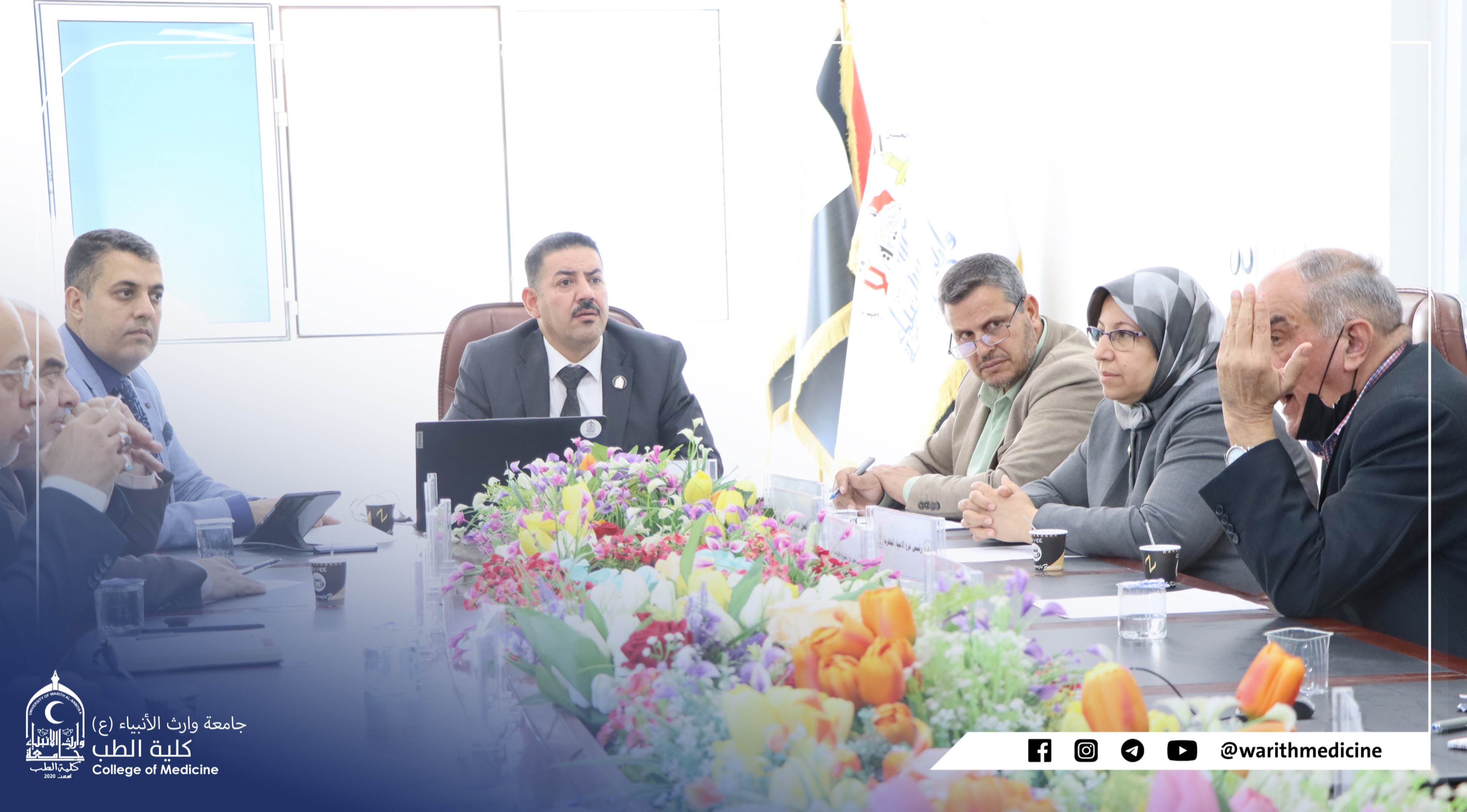 The Council of the Faculty of Medicine, Heir al-Anbiya University (peace be upon him) holds its regular session in the presence of the respected Dean of the Faculty of Medicine, Professor Dr. Ali Abd Saadoun, the distinguished assistants, and the heads of the branches.
