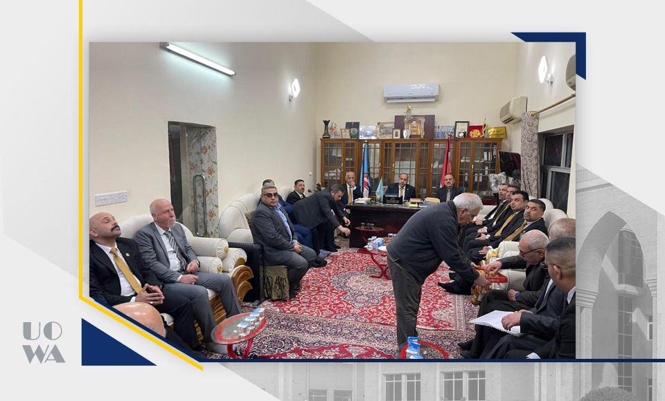 On a wonderful evening, a delegation from the University of Warith Al-Anbia visited the headquarters of the Karbala Council of Notables, consisting of Dr. Ibrahim Al-Hayawi, President of the University, Dr. Nofal Al-Araji, Administrative Assistant, Dr. Waqid Al-Moussawi, Scientific Assistant, Dr. Ali Sahib Al-Sharifi, Dean of the College of Law, Dr. Ali Abdul-Saadoun Al-Ghazi, Dean of the College of Medicine, Dr. Laith Muhammad Abbas, Assistant Dean, Dr. Ali Mansour Jassim, Assistant Dean, Dr. Riyadh Abdul-Rasoul Haniwa, Head of the Department of Diseases, Dr. Hussein Hadi Al-Awadi, Dean of the College of Engineering, Dr. Murtadha Ghanem Adai, Dean of the College of Nursing, and other professors. The delegation was received with great warmth, as the meeting included talk about the qualitative leaps achieved in the recent medical and legal educational progress of the university according to the standards approved by the Ministry of Higher Education and Scientific Research. The creative and distinguished were also honored with a document of thanks and appreciation, and they were given the Shield of Creativity and Excellence for their wonderful scientific educational performance, wishing continued success and progress for all colleges of the university. May God grant success... Saturday 8/2/2025