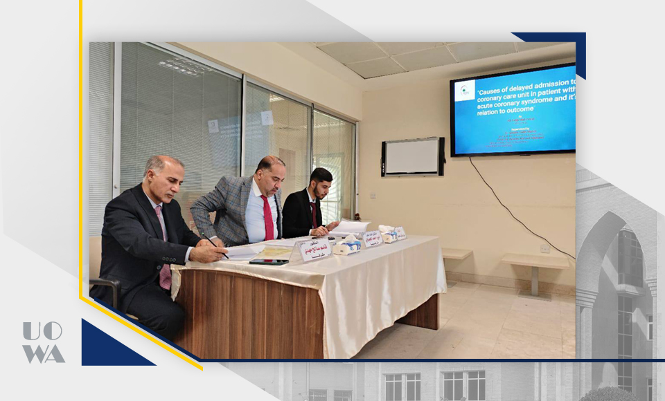 On March 12, 2025, Dr. Qasim Saleh Mahdi Abboud, a lecturer at the College of Medicine at Warith al-Anbiya University, participated in a discussion of a scientific research paper presented by an Arab Board student specializing in internal medicine at Imam al-Sadiq Hospital (peace be upon him).