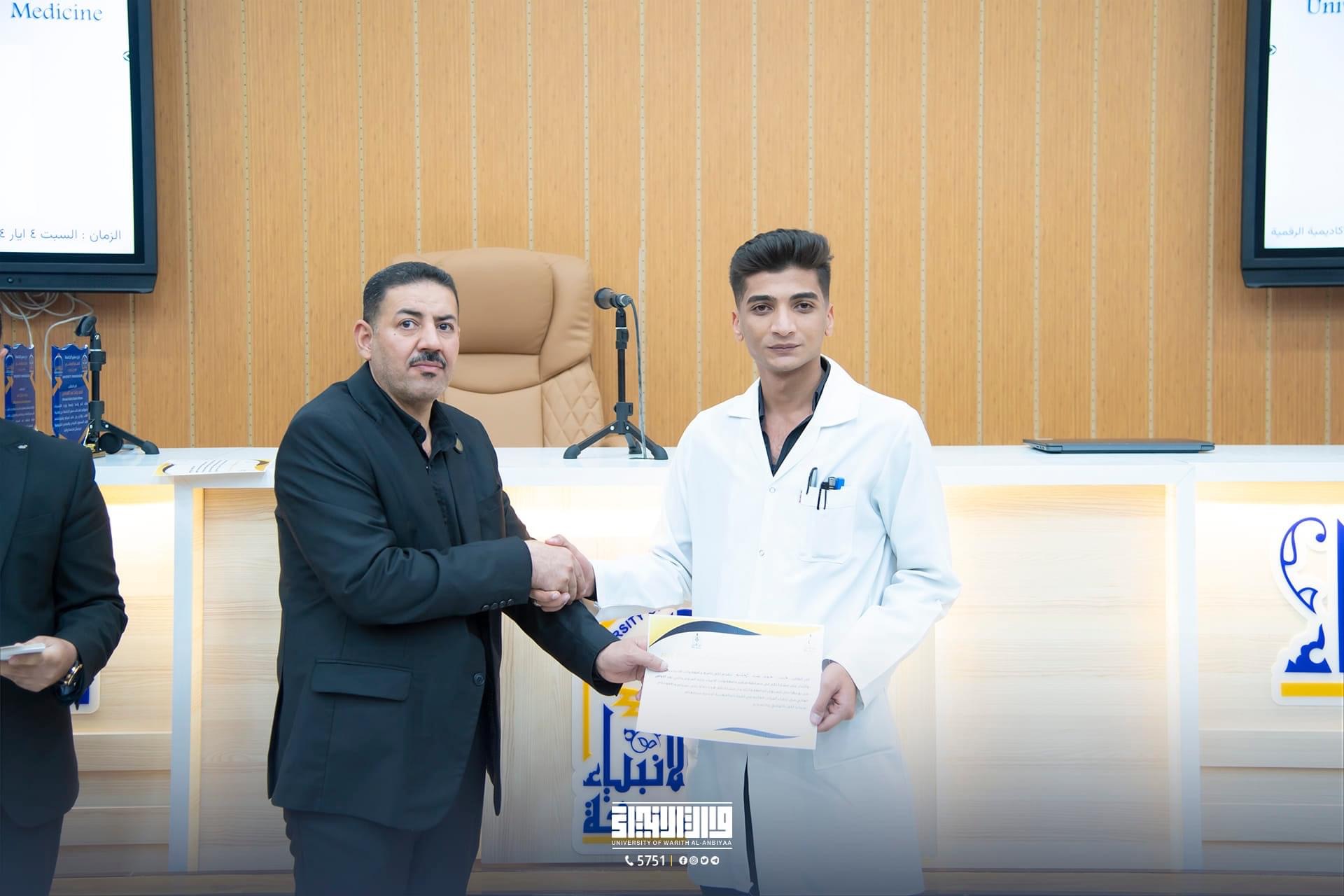 Under the patronage of the President of the University, Professor Dr. Ibrahim Saeed Al-Hayawi, and in the presence of the Dean of the Faculty of Medicine, Professor Dr. Ali Abd Saadoun Al-Ghazi, the Deanship of the Faculty of Medicine, in cooperation with the “Warith Elevate” team and the Department of Quality Assurance and University Performance, launched the project (Preparation and Selection of University Medical Ambassadors), which aims to represent the university and the country, whether locally or internationally.