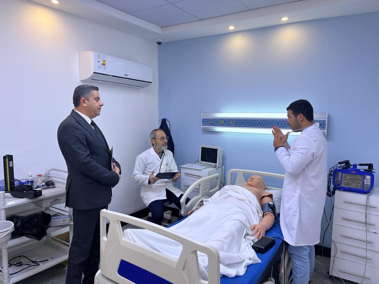 In the presence of Assistant Professor Dr. Nassim Samir Saqr, Assistant Dean of the College of Nursing, to review the progress of the educational process and to ensure the quality of the practical lessons that students receive in the educational laboratories, and to train the students in small groups, develop their skills in the subject of practical anatomy, and qualify them to perform in the College of Nursing Champions Competition, which will be held on 2/27/ 2024