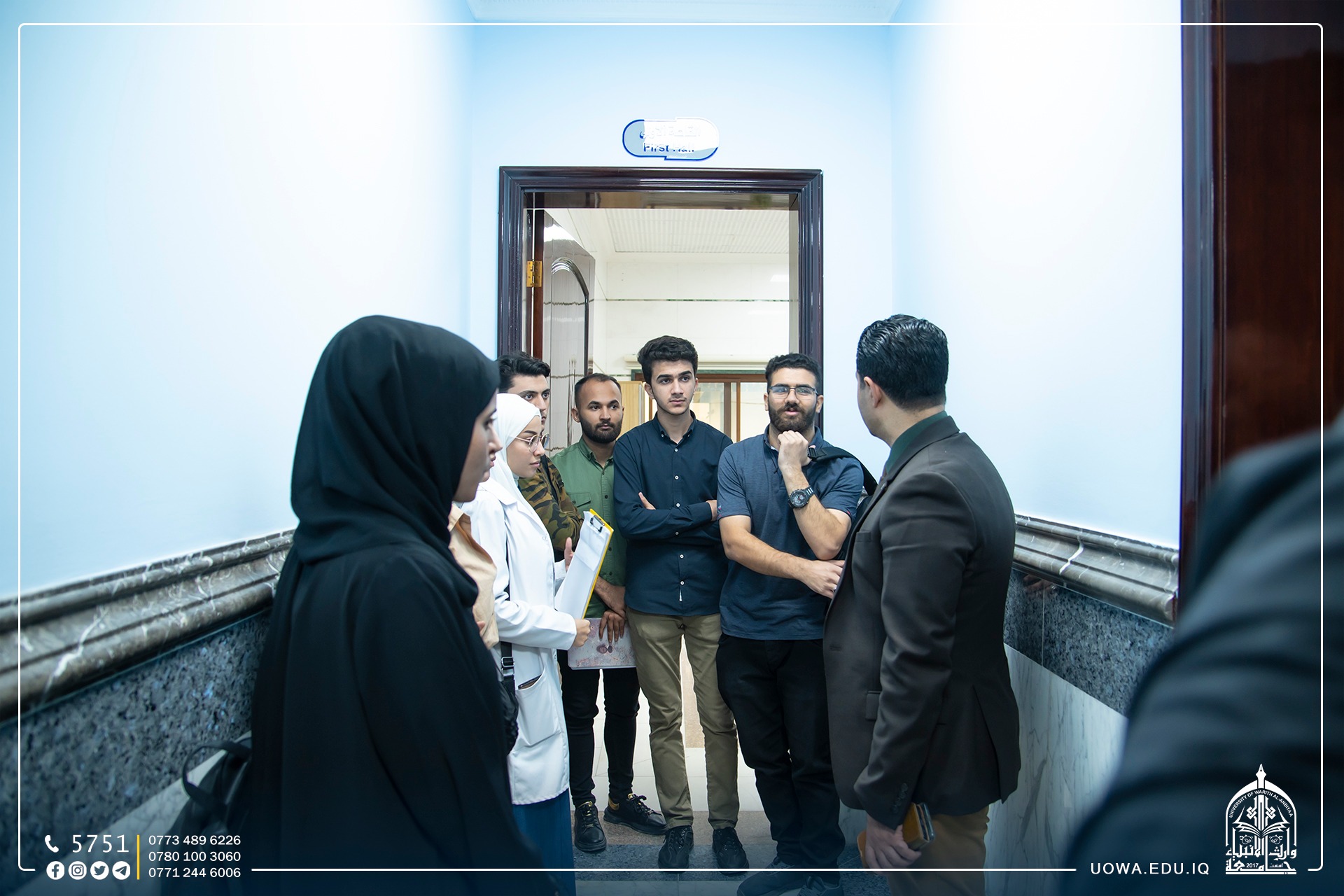 Medical students from the College of Medicine at the University of Warith Al-Anbiyaa (peace be upon him), accompanied by faculty members, conducted a scientific visit to the "Neuropathy and Cerebral Palsy Center" affiliated with the Holy Shrine of Imam Hussain. The director of the center provided an explanation about the center, its departments, and the available equipment.