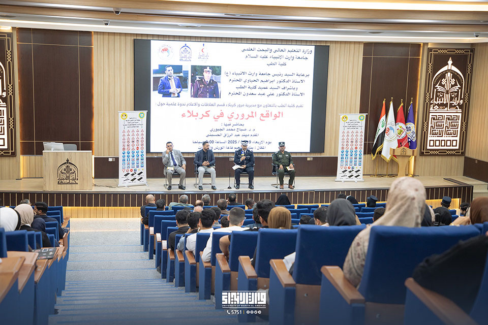 As part of its commitment to public safety and sustainable urban development, the College of Medicine at the University of Warith Al-Anbiyaa (PBUH), in collaboration with the Karbala Traffic Directorate, organised a symposium on traffic challenges and road safety.